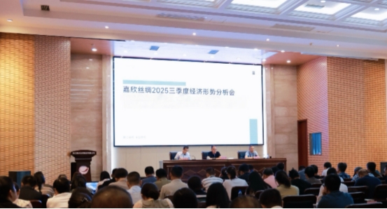 10月17日下午,浙江嘉欣絲綢集團(tuán)2025年第三季度經(jīng)濟(jì)形勢(shì)分析會(huì)在嘉欣絲綢廣場(chǎng)順利召開。會(huì)議全面總結(jié)分析了集團(tuán)前三季度經(jīng)濟(jì)運(yùn)行情況,研判當(dāng)前形勢(shì),部署下一階段重點(diǎn)工作,為沖刺全年目標(biāo)、圓滿收官“第九輪發(fā)展規(guī)劃”匯聚合力,為全面開啟“第十輪發(fā)展規(guī)劃”凝聚共識(shí)。