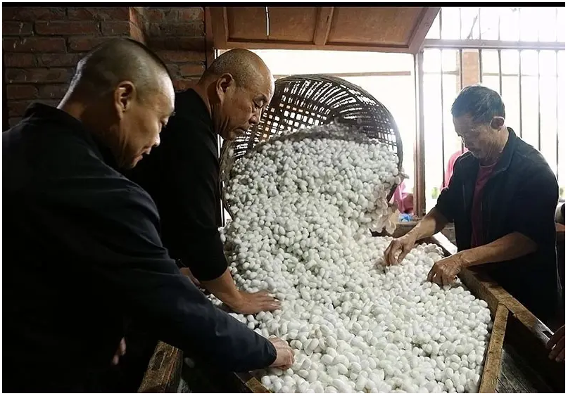 幾里外的紅旗絲綢有限公司童家繭站,同樣是一片繁忙景象。村民們背著滿簍的蠶繭,有序排隊,等候驗級、過秤、結算,臉上洋溢著豐收的喜悅。