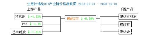 2025年第三季度,錦綸長(zhǎng)絲市場(chǎng)缺乏利好,價(jià)格走勢(shì)整體向下。以錦綸DTY為例,截止9月30日,江蘇地區(qū)錦綸長(zhǎng)絲DTY(優(yōu)等品;70D/24F)報(bào)價(jià)13880元/噸,較去年同期下跌4340元/噸,跌幅達(dá)23.82%。