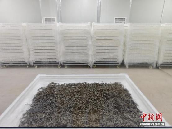 在鑫緣集團(tuán)的工廠化飼料養(yǎng)蠶基地里,智能化場(chǎng)景隨處可見。一排排養(yǎng)蠶架排列規(guī)整,溫濕度傳感器與自動(dòng)飼喂系統(tǒng)精準(zhǔn)協(xié)同,機(jī)械臂有序完成飼料分裝、蠶盤更換等作業(yè),空氣中彌漫著淡淡的飼料氣息。