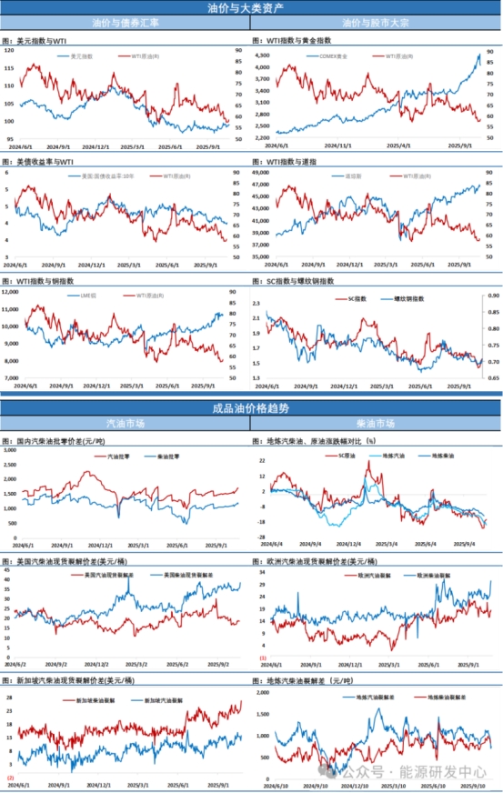 【2】阿格斯報道美國對俄羅斯兩大石油生產(chǎn)商實施制裁,疊加庫存下降及煉廠檢修季,歐洲柴油裂解價差創(chuàng)3個月新高,短期或繼續(xù)走強(qiáng)。國際原油期貨大漲,中國成品油價格跟進(jìn)緩慢,煉油利潤收窄, 市場內(nèi)弱外強(qiáng),汽柴油出口套利1月以來首次轉(zhuǎn)正。10月24日,西北歐柴油裂解價差創(chuàng)下31美元/桶的三個月新高,周環(huán)比大漲7美元/桶。同日,布倫特柴油期貨合約11-12月價差高達(dá)16.50美元/噸,較22日高6美元/噸。10月24日,中國渤海灣汽柴油裂解價差分別為9.1美元/桶和19.8美元/桶,周環(huán)比跌6.5美元/桶和4.3美元/桶。貿(mào)易端因恐漲適度加大汽油船單采購;但對因?qū)ξ磥硇枨罂纯?,柴油采買低迷。同日,中國-新加坡汽柴油出口利潤周環(huán)比分別上漲5.3美元/桶和9.1美元/桶至2.2美元/桶和5.7美元/桶。