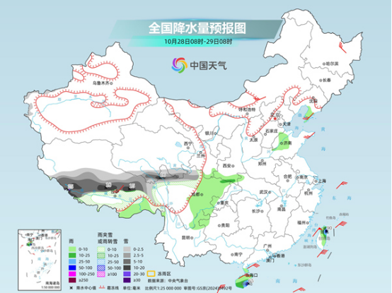 未來三天(10月28日至30日),青藏高原部分地區(qū)雨雪頻繁,局地有暴雪或大暴雪,需注意做好相關(guān)防御措施。此外,明天,我國中東部地區(qū)降水將增多,公眾雨雪天出行請(qǐng)留意交通安全。氣溫方面,今明天,我國大部氣溫回升,但晝夜溫差拉大,公眾請(qǐng)適時(shí)調(diào)整著裝,謹(jǐn)防感冒。