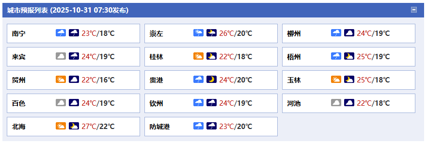 廣西氣象臺(tái)31日05時(shí)發(fā)布預(yù)報(bào):
