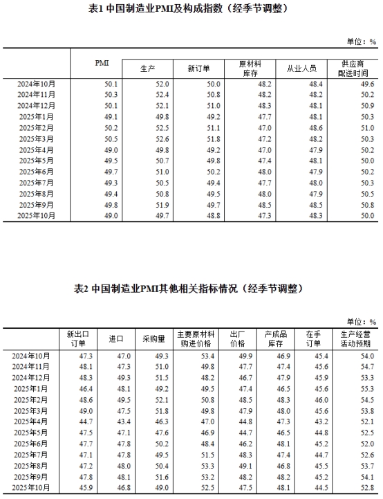 10月份,制造業(yè)采購(gòu)經(jīng)理指數(shù)(PMI)為49.0%,比上月下降0.8個(gè)百分點(diǎn),制造業(yè)景氣水平有所回落。