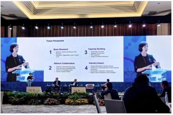 在“可持續(xù)、法規(guī)和關(guān)稅”議題環(huán)節(jié),中國紡聯(lián)副會長閻巖以“可持續(xù)引領(lǐng)發(fā)展——中國紡織政策框架和協(xié)同行動”為題,進行了發(fā)言。在未來展望中,她呼吁,應(yīng)聚焦于四個主要方面:基礎(chǔ)研究——探索控制和減少溫室氣體排放的方法,并在組織層面和產(chǎn)品層面制定相關(guān)標(biāo)準(zhǔn);聯(lián)盟合作——通過包括參與UNFCCC FICCA工作組、實施30·60凈零加速計劃、加入CNTAC-LCA工作組以及推進時尚森林倡議,加強合作與行動;能力建設(shè)——致力于技術(shù)推廣、數(shù)據(jù)庫建設(shè)、可再生能源投資以及Scope3排放的減少;行業(yè)影響——通過舉辦氣候管理時尚峰會、參與洲際紡織ESG/碳中和會議、與下游客戶合作,以及提升供應(yīng)鏈的透明度和可追溯性,來推動整個行業(yè)的進步與發(fā)展。