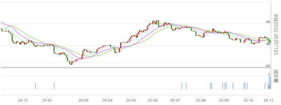 今日(周二)生絲盤(pán)面承接昨日走勢(shì)繼續(xù)有所下行,成交一般。作為現(xiàn)貨月的251125合約,今日繼續(xù)有成交增倉(cāng)。
