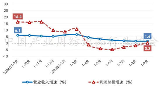 根據(jù)國家統(tǒng)計(jì)局?jǐn)?shù)據(jù),2025年前三季度產(chǎn)業(yè)用紡織品行業(yè)規(guī)模以上企業(yè)的營業(yè)收入和利潤總額分別同比增長1.6%和0.3%;根據(jù)中國產(chǎn)業(yè)用紡織品行業(yè)協(xié)會(huì)測算,行業(yè)規(guī)模以上企業(yè)的營業(yè)利潤率為3.7%,同比下降0.1個(gè)百分點(diǎn);行業(yè)虧損面為24.2%,較二季度收窄2.6個(gè)百分點(diǎn)。自2025年一季度以來,行業(yè)的營業(yè)收入增速逐月放緩,利潤總額增速再次進(jìn)入下降通道,行業(yè)經(jīng)濟(jì)平穩(wěn)運(yùn)行的基礎(chǔ)仍需鞏固。