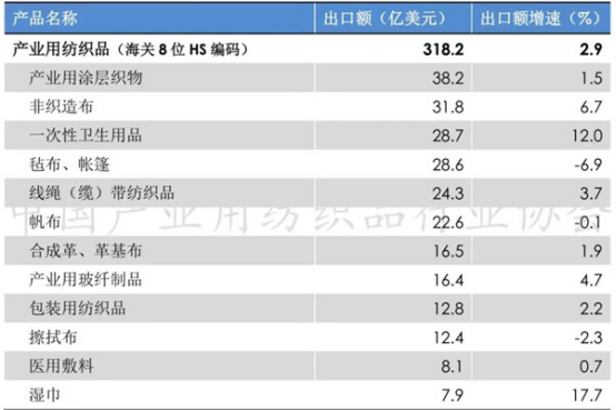 數(shù)據(jù)來源:中國產(chǎn)業(yè)用紡織品行業(yè)協(xié)會(huì)