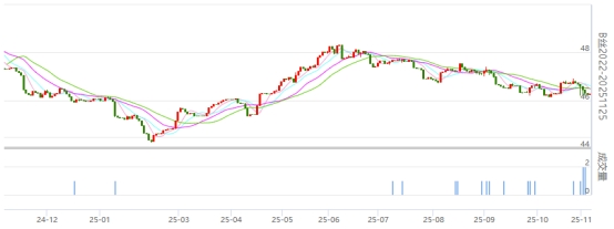 今日(2025年11月06日,周四)中國繭絲綢交易市場生絲電子指數報平,收于4658.27點。B絲2022D(商檢4A級生絲):251125合約上漲0.03萬元報收于46.29萬元;260325合約下跌0.03萬元報收于46.86萬元;260925合約下跌0.03萬元報收于46.86萬元。