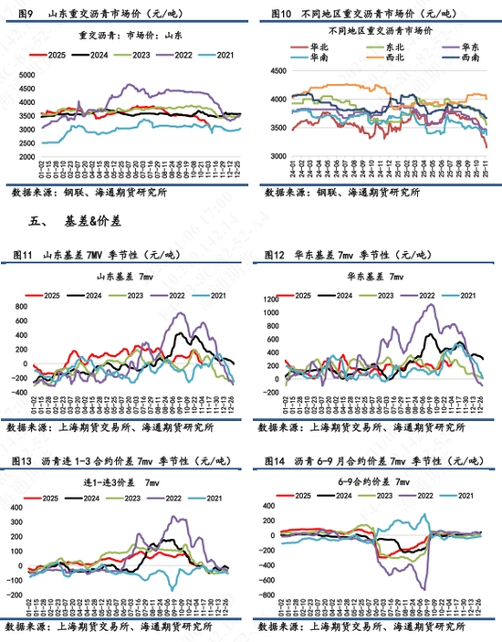 【2】現(xiàn)貨市場:①山東重交瀝青(3609, -13.00, -0.36%)現(xiàn)貨價為3140元/噸,環(huán)比持平,7天累計跌幅6.8%。山東基差為-9元/噸,7天累計跌幅50元/噸,基差回落明顯。②最便宜可交割品種市場價為3040元/噸,即70#瀝青山東弘潤開價。③華東現(xiàn)貨均價為3354元/噸,升水與期貨。華東基差為331元/噸,7天累計漲幅140元/噸。