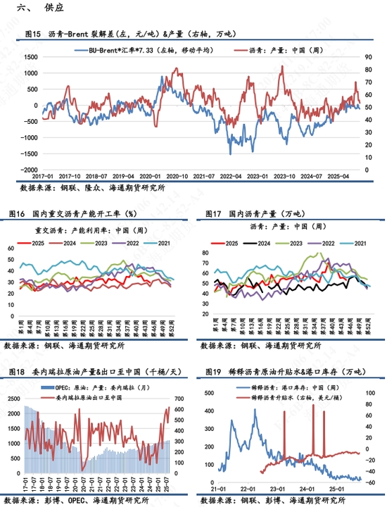 【4】基本面變化:下游需求開工率不高,庫存被動去庫,供應(yīng)壓力漸在,基本面平淡。目前地?zé)挒r青價格維持在3040-3160元/噸。下游對高價貨接貨意愿低,市場觀望情緒濃厚。疊加成本端支撐大幅減弱,瀝青價格回落明顯。