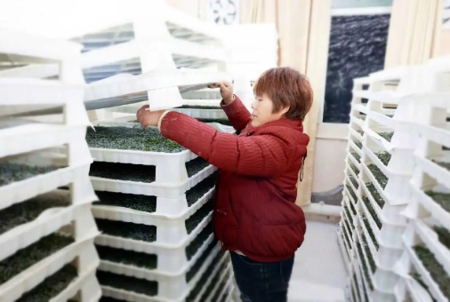 智能化小蠶共育室內(nèi),工作人員查看小蠶長勢