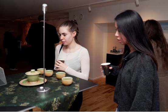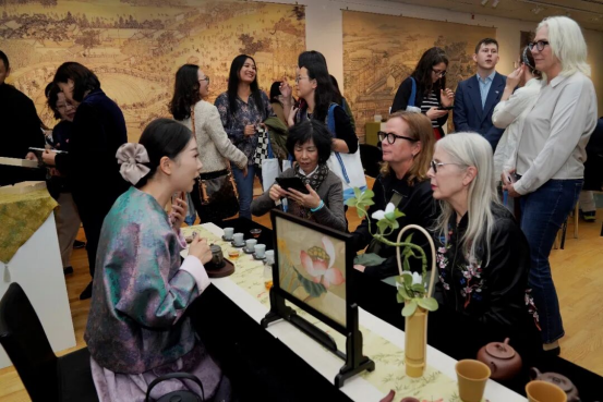絲綢、瓷器、茶葉是絲綢之路上重要的商貿(mào)產(chǎn)品和交流見證,凝聚著千年傳統(tǒng)文化,至今在江蘇繼續(xù)著延綿傳承和創(chuàng)新發(fā)展。蘇州碧螺春、南京雨花茶作為人類非遺代表作,與陽羨雪芽、金壇雀舌、天目湖白茶等江蘇名茶共同呈現(xiàn)“茶之味”。在《金陵圖》《惠山茶會圖》《西園雅集圖》等經(jīng)典畫作營造的氛圍下,瑞典觀眾在江蘇省陶瓷藝術(shù)大師鮑玉梅的曼生壺系列紫砂壺中品味了來自江蘇的醇厚茶香。