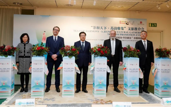 11月7日,“茶和天下?蘇韻雅集”文旅推介會暨“運河流光?守藝新生”非遺精品展在斯德哥爾摩中國文化中心隆重啟幕。本次活動由江蘇省文化和旅游廳、斯德哥爾摩中國文化中心主辦,蘇州市吳江區(qū)文廣旅局、蘇州絲綢博物館、南京云錦博物館、江蘇高淳陶瓷股份有限公司協(xié)辦。江蘇省人民政府副省長陳忠偉、中華人民共和國駐瑞典王國大使館教育參贊黃立瓊、瑞典國家旅游局企業(yè)聯(lián)絡(luò)主管吉姆?霍夫韋貝里、瑞典一帶一路研究所主席史蒂芬?布勞爾、斯德哥爾摩中國文化中心副主任戴衛(wèi)紅、江蘇省農(nóng)業(yè)農(nóng)村廳廳長季輝、江蘇省文化和旅游廳副廳長錢寧、江蘇省人民政府外事辦公室副主任劉建東、蘇州市人民政府副市長查穎冬出席了活動。