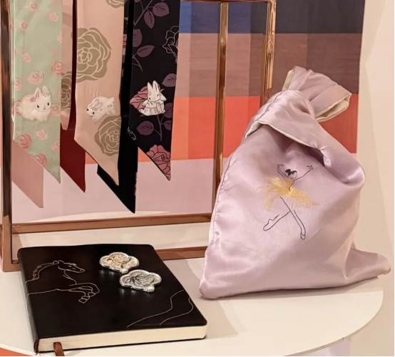 蘇州是中國蠶桑絲綢文明重要發(fā)源地之一。從草鞋山到江南蠶織重地,從蘇州織造到近代絲綢工業(yè),絲綢成為蘇州文化名片,并通過大運河和絲綢之路,與中華和世界文明持續(xù)交流互鑒。展覽中,蘇州絲綢通過創(chuàng)意展示對世界文化的表達。太湖雪設(shè)計創(chuàng)作的以斯德哥爾摩標(biāo)志性達拉木馬為原型的蠶繭花立體木馬,成為東西方文化交融的生動象征。上久楷與法國藝術(shù)家進行深度合作,融合法國繪畫與宋錦面料,體現(xiàn)了織錦工藝與歐洲藝術(shù)的交織??锛C在新產(chǎn)品上繡出了歐洲古典舞蹈“芭蕾”,讓蘇繡在穿針引線中翩翩起舞。