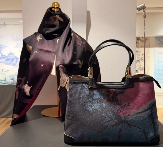 絲綢色彩承載著中華文化的東方美學(xué)與哲學(xué)思考,是中華優(yōu)秀傳統(tǒng)文化的視覺和文化符號。蘇州絲綢博物館完成國家文化和旅游科技創(chuàng)新研發(fā)項目“絲綢紋樣數(shù)據(jù)庫”開發(fā),“絲綢文化色彩數(shù)據(jù)規(guī)范”列入省級標(biāo)準(zhǔn)制定計劃,為絲綢色彩應(yīng)用建立了數(shù)字基礎(chǔ)。展覽中,蘇州大學(xué)蘇作技藝數(shù)智化技術(shù)團隊研發(fā)的緙絲色彩數(shù)字化應(yīng)用系統(tǒng)首次亮相,將與蘇州絲綢博物館合作開展絲綢色彩研究。蘇州絲綢博物館和太湖雪基于館藏袞服紋樣研發(fā)的“國色華章”絲巾也首次在海外亮相,絲巾將傳統(tǒng)色彩融入時尚,呈現(xiàn)獨特生活美學(xué)韻味。