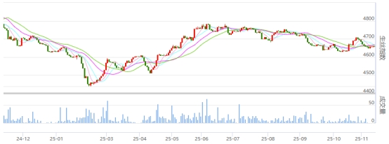 今日(周四)生絲盤面各遠近合約延續(xù)窄幅震蕩態(tài)勢,現(xiàn)貨月251125生絲合約小幅收跌,其余合約多數(shù)呈小幅收紅。