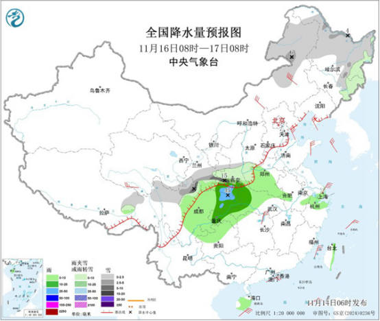 今天(11月14日)起至17日,今年下半年首場(chǎng)寒潮來襲,局地降溫將超12℃。降溫過后,氣溫將大范圍創(chuàng)今年下半年來新低,17日最高氣溫0℃線將南壓到陜西北部、山西北部、河北北部、遼寧北部一帶。這次寒潮過程由于暖濕氣流較弱,今起三天全國雨雪天氣總體不多,但青藏高原東部至西南地區(qū)東部一帶多陰雨雪天氣。