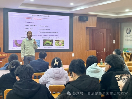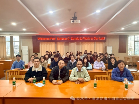 應資源昆蟲全國重點實驗室邀請,印度國家科學院院士、葡萄牙米尼奧大學I3Bs(生物材料、生物可降解性與仿生學研究所)終身教授 Subhas C. Kundu 于2025年10月10日至11月15日到資源昆蟲全國重點實驗室開展為期一個多月的合作交流。實驗室主任代方銀教授熱情接待Kundu教授,作出有關(guān)工作安排。實驗室李田副主任、童曉玲教授、龍定沛研究員、陳潔副教授等通過座談,向Kundu院士介紹了有關(guān)進展情況,龍定沛研究員對接全面工作。