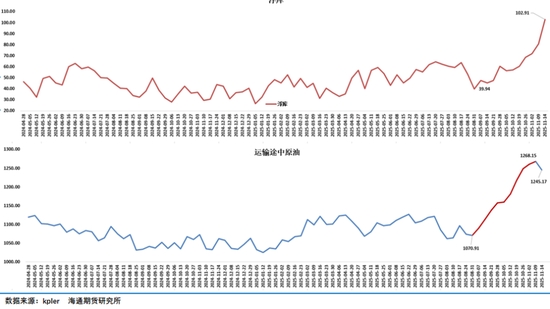 根據(jù)Kpler相關(guān)數(shù)據(jù),過去三周全球原油市場庫存持續(xù)累積,增長約5000萬桶,而水上原油的增量同樣持續(xù)刷高點,從9月初到現(xiàn)在新增的水上原油數(shù)量高達(dá)1.7億桶,這意味著原油市場供應(yīng)過剩壓力持續(xù)增加中。彭博跟蹤報道隨著全球海洋原油供應(yīng)量的不斷增加導(dǎo)致船舶供應(yīng)吃緊超級油輪的運油成本攀升至五年高位,短短三天租用一艘可從沙特阿拉伯運200萬桶原油至中國的船的基準(zhǔn)價格上漲逾3.6萬美元至近12.6萬美元/天,為2020年4月以來最高水平。
