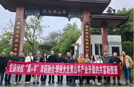 隨后,共建支部一行前往位于大足區(qū)的重慶騰達牧業(yè)股份有限公司(國家大足黑山羊保種場)進行調(diào)研,公司負責(zé)人黃德利介紹了“大足黑山羊-飼料桑”種養(yǎng)示范的階段性成果,期待三方進一步開展全面合作,將飼料桑全面融入到黑山羊飼草料本地化供應(yīng)鏈條中。