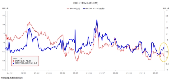不過(guò)值得注意的是雖然油價(jià)連續(xù)下跌,但是布倫特月差近端并未同步走弱,相反在過(guò)去幾個(gè)交易日油價(jià)走弱的過(guò)程中月差還反向有所反彈,這意味著對(duì)俄制裁給歐洲地區(qū)供應(yīng)擾動(dòng)還是產(chǎn)生了實(shí)質(zhì)性影響,這種影響并未隨著市場(chǎng)預(yù)期改變而退潮,市場(chǎng)的觀點(diǎn)基于不同立場(chǎng)存在明顯分歧。一方面擔(dān)心和平計(jì)劃落地后的利空,一方面對(duì)供應(yīng)產(chǎn)生擾動(dòng)的現(xiàn)實(shí),這局面確實(shí)上頭。