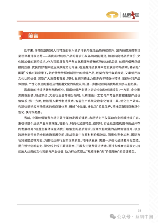 編者按:2025年國內(nèi)紡織消費市場呈現(xiàn)顯著升級態(tài)勢,國內(nèi)絲綢消費市場呈現(xiàn)良好態(tài)勢,本報告內(nèi)容涵蓋市場概況、品類多元化、消費者群體、競爭局面、市場面臨發(fā)展與挑戰(zhàn),市場消費與機遇、建議和對策等多個方面。