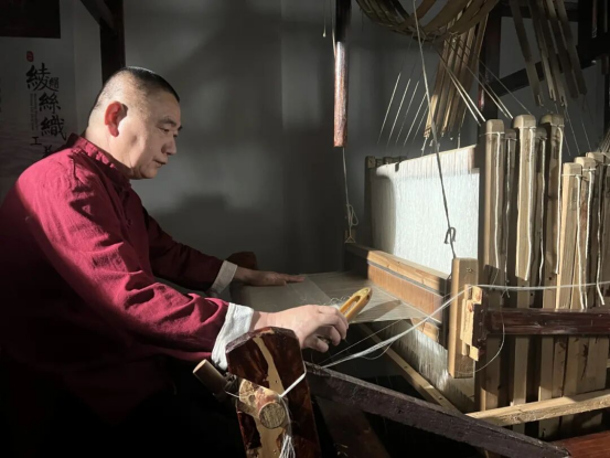 在體驗(yàn)館,游人還可以親自體驗(yàn)古法綾絹生產(chǎn)的不同工序??椩臁⒀b裱、繪扇……在非遺傳承人的指導(dǎo)下,與這項(xiàng)千年技藝來一次近距離接觸。