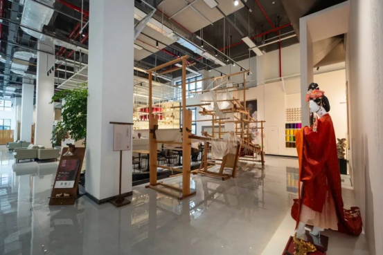 這里不僅匯聚了數(shù)百家優(yōu)質(zhì)絲綢商戶,還有與浙江理工大學(xué)攜手打造的國際絲綢時(shí)尚青創(chuàng)中心、服裝設(shè)計(jì)國家級虛擬仿真實(shí)驗(yàn)教學(xué)中心與數(shù)字化藝術(shù)設(shè)計(jì)產(chǎn)教基地、湖州絲綢品種傳承保護(hù)中暨蠶桑絲織技藝研學(xué)基地等多個(gè)基地及絲綢文化館、《浙理·絲古織今》科普工作室等多個(gè)絲綢產(chǎn)業(yè)空間。