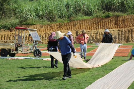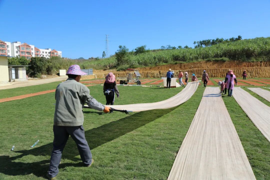 “現(xiàn)在我們曬制的香云紗,都是從忻城絲綢廠采購生絲運去浙江織造,再拉回忻城進(jìn)行染色和晾曬的,最終制成香云紗。項目落實后,就不用來回搬運了,節(jié)約很多成本。”示范園運營方杭州依耐杰紡織品有限公司負(fù)責(zé)人寧東成透露,目前第一期用地20多畝,聘請周邊40多名工人。下個月將啟動第二期建設(shè),位于南側(cè)面積約50畝,整體規(guī)模將達(dá)70多畝。