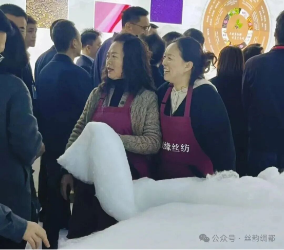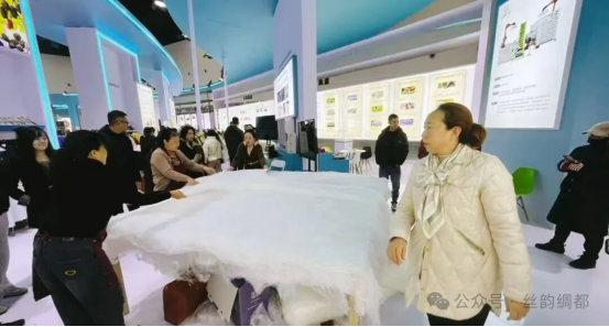 漢緣絲綢的展位前,人頭攢動(dòng)、絡(luò)繹不絕。不同于常規(guī)展示,企業(yè)特意安排工人現(xiàn)場(chǎng)展演蠶絲被制作技藝——蓬松輕柔的絲棉在指尖舒展,光澤細(xì)膩溫潤(rùn),這背后是企業(yè)獨(dú)有的鮮繭取絲工藝在發(fā)力?!拔覀儓?jiān)持用鮮繭直接取絲,能最大程度保留蠶繭的天然繭素和瑩潤(rùn)光澤?!爆F(xiàn)場(chǎng)負(fù)責(zé)人介紹,公司不僅選用100%正繭上等絲棉,更在省內(nèi)首創(chuàng)鮮正繭絲棉片手工制被技術(shù)。展位上,市纖維檢驗(yàn)所出具的47項(xiàng)全合格檢驗(yàn)報(bào)告與市級(jí)非遺認(rèn)證牌匾并排陳列,讓消費(fèi)者買(mǎi)得安心。“摸起來(lái)像云朵一樣軟,又有這么多保障,果斷給父母也帶一套。”剛提走兩床蠶絲被的張先生笑著說(shuō)。