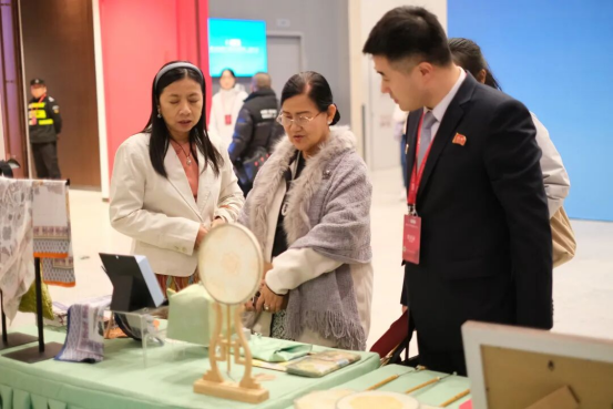 出席會議的領(lǐng)導(dǎo)、嘉賓、代表參觀展覽并參與蠶桑絲織技藝非遺體驗活動。亞洲文化遺產(chǎn)聯(lián)盟秘書長貢維列參觀展覽,表示“展覽很精彩?!眮喼尬幕z產(chǎn)聯(lián)盟咨詢委員歐塔別克對展覽和體驗活動都非常認(rèn)可。
