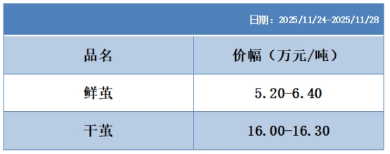 根據(jù)本周蠶繭報(bào)價(jià)按照指數(shù)方案形成的基準(zhǔn)品價(jià)格區(qū)間