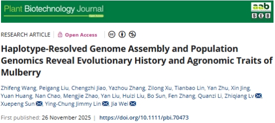 近日,浙江省農(nóng)科院蠶桑與茶葉研究所桑育種與栽培團(tuán)隊(duì)聯(lián)合北京大學(xué)、浙江農(nóng)林大學(xué)、臺(tái)灣大學(xué)等多家科研單位,在《Plant Biotechnology Journal》(IF=12.4)上發(fā)表了題為“Haplotype-Resolved Genome Assembly and Population Genomics reveal Evolutionary History and Agronomic Traits of Mulberry”的研究論文。該研究成功完成了我國(guó)兩大主栽桑樹品種‘農(nóng)桑14號(hào)’與‘強(qiáng)桑1號(hào)’的高質(zhì)量單倍型基因組組裝,首次以確鑿的分子證據(jù)揭示了桑樹的起源與傳播歷史,揭示了控制桑樹產(chǎn)量、抗病性等關(guān)鍵農(nóng)藝性狀的遺傳密碼,為桑樹分子育種奠定了里程碑式的基礎(chǔ)。