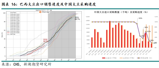 10%的美巴大豆進(jìn)口稅差下,2026年2月船期之后中國(guó)大豆的采購(gòu)及到港,仍將以巴西大豆為主。中國(guó)對(duì)美豆的采購(gòu)量暫時(shí)難以增加,也不排除后期中美談判有新的進(jìn)展,導(dǎo)致中國(guó)追加25/26年度的美豆采購(gòu)。目前中國(guó)采購(gòu)數(shù)量同比預(yù)估減少,CBOT大豆上漲空間有限。后期關(guān)注亞洲其他國(guó)家對(duì)美豆增加采購(gòu)承諾的兌現(xiàn)情況。
