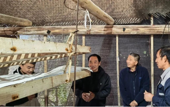 在養(yǎng)蠶戶柏昌林的蠶房內(nèi),專家團隊仔細查看蠶匾擺放、消毒設(shè)施及溫濕度控制等環(huán)節(jié),就日常養(yǎng)殖技術(shù)要點與農(nóng)戶深入交流。蠶房外空地上,專家針對小蠶共育溫度調(diào)控、桑葉采摘時機等共性問題現(xiàn)場答疑,建議農(nóng)戶采摘時避開午間及高溫時段,實行早晚采收,令養(yǎng)殖戶受益匪淺。