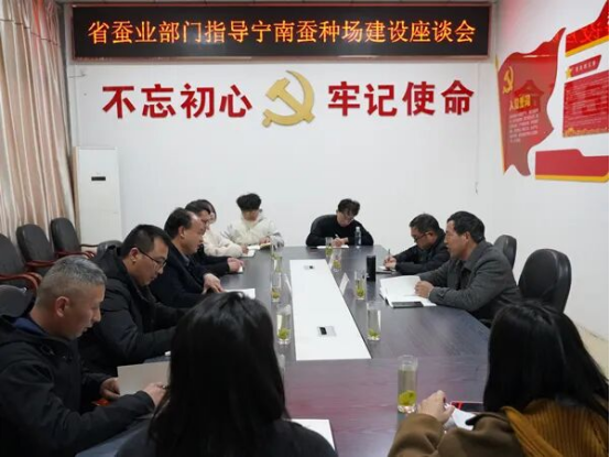 現(xiàn)場察看結(jié)束后,召開專題座談會。會上,縣南絲路集團(tuán)詳細(xì)匯報(bào)了寧南縣原蠶種飼養(yǎng)的品種布局、生長態(tài)勢、飼養(yǎng)管理技術(shù)應(yīng)用等情況。謝忠良一行認(rèn)真傾聽匯報(bào),對南絲路集團(tuán)在原蠶種培育方面取得的成效表示認(rèn)可,并圍繞制種技術(shù)優(yōu)化、質(zhì)量監(jiān)管體系完善、消毒防病流程規(guī)范、原蠶基地標(biāo)準(zhǔn)化建設(shè)、有機(jī)肥科學(xué)使用等核心技術(shù)環(huán)節(jié),與企業(yè)負(fù)責(zé)人及技術(shù)骨干展開了深入交流探討。