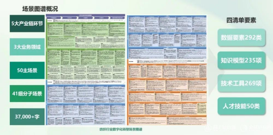 該圖譜全面覆蓋紡織產(chǎn)業(yè)鏈的研發(fā)設(shè)計(jì)、生產(chǎn)制造、經(jīng)營管理三大業(yè)務(wù)領(lǐng)域,系統(tǒng)梳理出50個(gè)主場景和41個(gè)細(xì)分場景,每個(gè)場景均包含現(xiàn)狀評級、數(shù)據(jù)要素、知識(shí)模型、技術(shù)工具、人才技能及痛點(diǎn)問題關(guān)鍵要素,為行業(yè)制定標(biāo)準(zhǔn)和推進(jìn)應(yīng)用落地提供了權(quán)威的理論基礎(chǔ)和方法,使紡織服裝企業(yè)的數(shù)字化轉(zhuǎn)型之路更清晰、更高效。