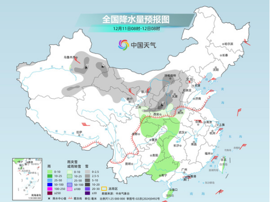 在這次寒潮過程中,由于水汽條件較好,我國(guó)將出現(xiàn)大范圍的雨雪天氣,這將是立冬以來最大規(guī)模的雨雪天氣。預(yù)計(jì)今起至13日,新疆、西北地區(qū)、華北、黃淮中北部、內(nèi)蒙古中部及東北地區(qū)中南部等地有小到中雪或雨夾雪,部分地區(qū)有大雪,新增積雪深度2至8厘米,局地可達(dá)10至15厘米;四川盆地、江漢、黃淮南部及其以南地區(qū)有小到中雨,局地大雨。