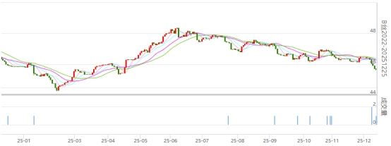 今日(2025年12月11日,周四)中國繭絲綢交易市場生絲電子指數(shù)下跌0.14%報收于4576.13點。B絲2022D(商檢4A級生絲):251225合約下跌0.03萬元報收于45.66萬元;260325合約下跌0.06萬元報收于45.81萬元;260925合約下跌0.03萬元報于45.75萬元。