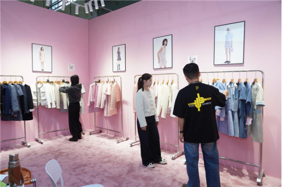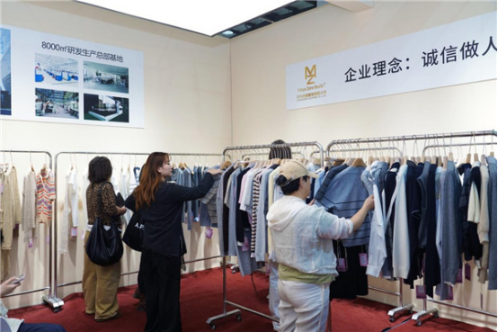 走進展廳,華經服飾的小香風外套便吸引了許多人的目光,這家深耕行業(yè)15年的企業(yè)主打中高端梭織產品,訂單已排至明年四月,“我們梭織品類豐富多元,此次專屬帶來‘小香風’系列,憑借差異化優(yōu)勢圈粉不斷。”負責人李晶晶很熱情地推介著。