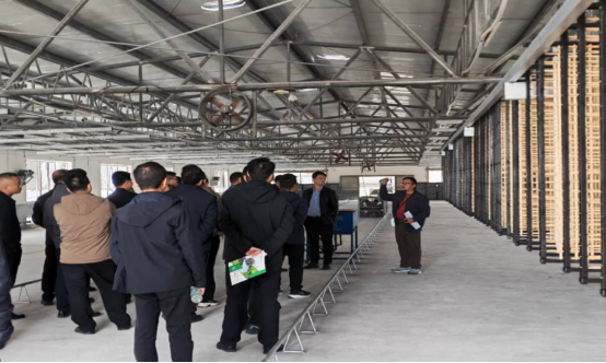 培訓(xùn)班學(xué)員現(xiàn)場觀摩省力化大蠶房設(shè)備設(shè)施