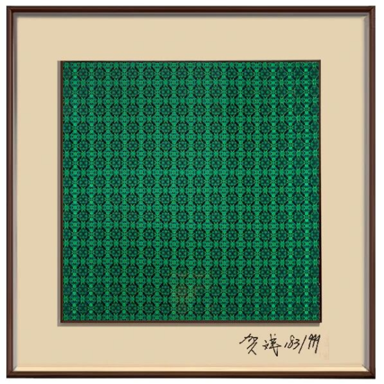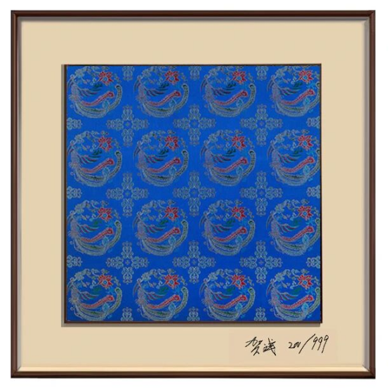 本次呈現(xiàn)的《萬花鏡錦》與《鳳穿牡丹錦》系列手工蜀錦藝術(shù)品是由蜀錦織造技藝國家級代表性傳承人賀斌及非遺傳承人團(tuán)隊(duì),在全球唯一可操作的清代道光年小花樓木織機(jī)上,以傳統(tǒng)手工蜀錦織造工藝全手工織造而成。