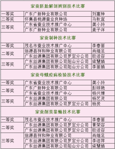 第三屆廣東省蠶桑生產(chǎn)技能大賽獲獎(jiǎng)名單
