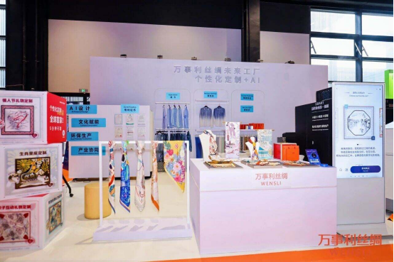11月上旬,2025年世界互聯(lián)網(wǎng)大會烏鎮(zhèn)峰會舉行,萬事利的展臺擠滿了消費者。數(shù)字屏幕上流光溢彩,只需輸入“敦煌飛天”“現(xiàn)代都市”等關(guān)鍵詞,數(shù)秒之內(nèi),數(shù)十款融合古典神韻與現(xiàn)代美學(xué)的絲巾設(shè)計方案便躍然屏上。