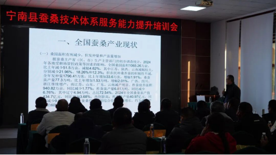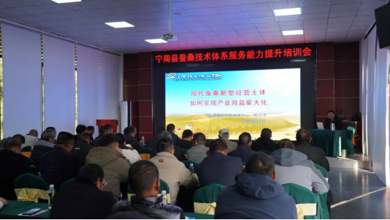為進(jìn)一步提升全縣蠶桑技術(shù)體系服務(wù)效能,夯實(shí)蠶桑產(chǎn)業(yè)高質(zhì)量發(fā)展根基,12月15日至16日,寧南縣召開(kāi)蠶桑技術(shù)體系服務(wù)能力提升培訓(xùn)會(huì)。培訓(xùn)尾聲,同步召開(kāi)2026年蠶業(yè)生產(chǎn)管理工作會(huì),統(tǒng)籌部署來(lái)年產(chǎn)業(yè)發(fā)展任務(wù)。縣農(nóng)業(yè)農(nóng)村局、縣蠶業(yè)發(fā)展中心、縣南絲路集團(tuán)相關(guān)負(fù)責(zé)人,縣蠶業(yè)發(fā)展中心技術(shù)員,南絲路集團(tuán)蠶桑站技術(shù)員,13個(gè)鎮(zhèn)蠶輔員、中心技術(shù)員等100余人參加會(huì)議。