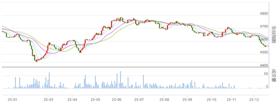 從大宗商品整體表現(xiàn)來看,截至2025年11月30日,人民幣大宗商品主要品類中,貴金屬上漲56.49%,在所有品類中遙遙領先,其他上漲的大類包括有色(1.25%)、谷物(2.25%)和油脂油料(4.61%)。