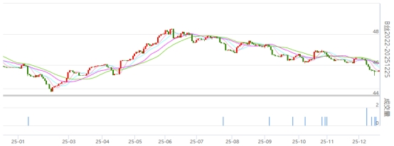 今日(周四)盤面遠近生絲合約價格在暫時止跌基礎上小幅波動,260325生絲合約略減倉小幅收紅。從生絲電子指數(shù)技術來看,當前 KDJ 指標三值均處于20以下的超賣區(qū)間,理論上存在超賣反彈的可能性,但K、D、J 三線仍處于低位即將粘合狀態(tài)。同時,MACD綠柱有所縮短。