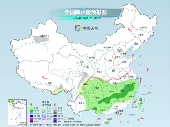 后天,新疆沿天山地區(qū)、西藏東南部、川西高原等地部分地區(qū)有小雪或雨夾雪。江漢南部、江南、西南地區(qū)東部、華南北部和西部、海南島東部、臺灣島等地部分地區(qū)有小雨,其中,湖南中南部、江西中部和東北部、浙江西南部、廣西西南部和北部等地部分地區(qū)有中雨。