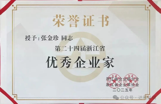 絲企新聞丨達(dá)利絲綢總經(jīng)理張金珍榮獲第24屆浙江省優(yōu)秀企業(yè)家光榮稱號